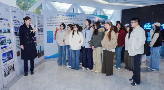 在海宁市天一纺织有限公司,总经理助理陈唯权带领大家参观了企业展厅与生产检验车间,使同学们全面掌握了从研发到出厂的完整运作体系。此外,师生们还探访了海宁市华星服饰辅料有限公司与海宁与里服装设计有限公司,直击供应链核心环节,全面丰富了产业实践知识。