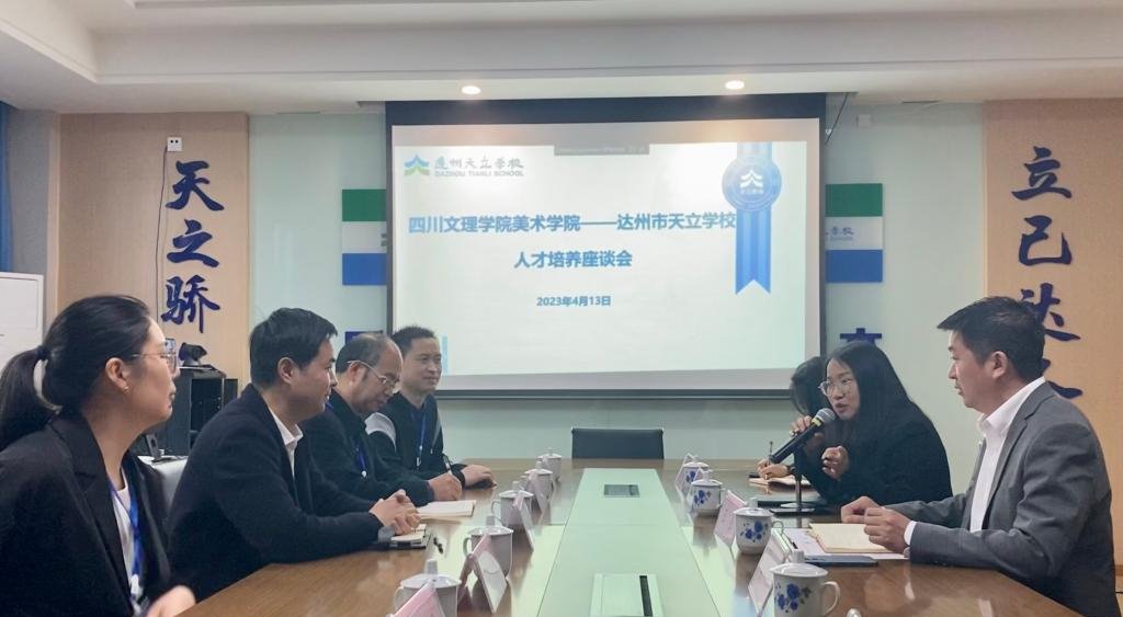 座谈会上,罗江书记对公司公司基本情况、办学理念、专业设置、人才培养模式等方面进行了详细介绍,王斌副书记就公司2023届毕业生情况进行了推介,以期实现人岗匹配。达州天立公司副董事长王强、甘冰如指出目前美术、数学、计算机、音乐等专业教师仍有缺额,并就公司概况、青年教师基本素质、培养渠道、招聘流程、基本待遇等进行了交流发言。