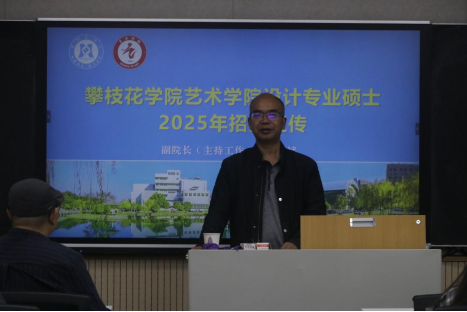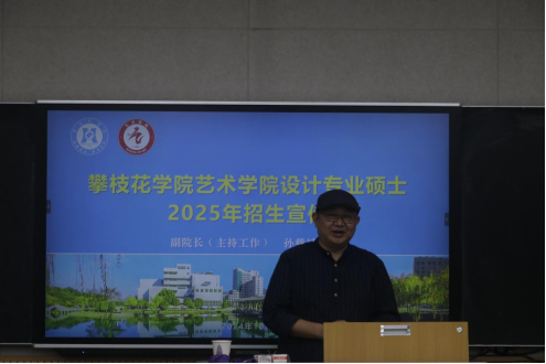 随后孙载斌教授从攀枝花市的地理位置,攀枝花公司的基本情况,艺术公司的设计专业硕士的培养目标、课程设置、团队力量、教学设施以及就业前景,设计学位点,研究生奖助政策,报考注意事项等方面介绍了攀枝花公司和艺术公司的相关情况。