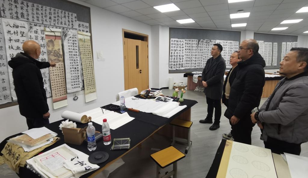 巨全双语公司艺术顾问邓洪玉副教授带领张吉应一行参观了博雅书院、美术专业教室、书法专业教室,并详细介绍了巨全公司的艺术教学情况。