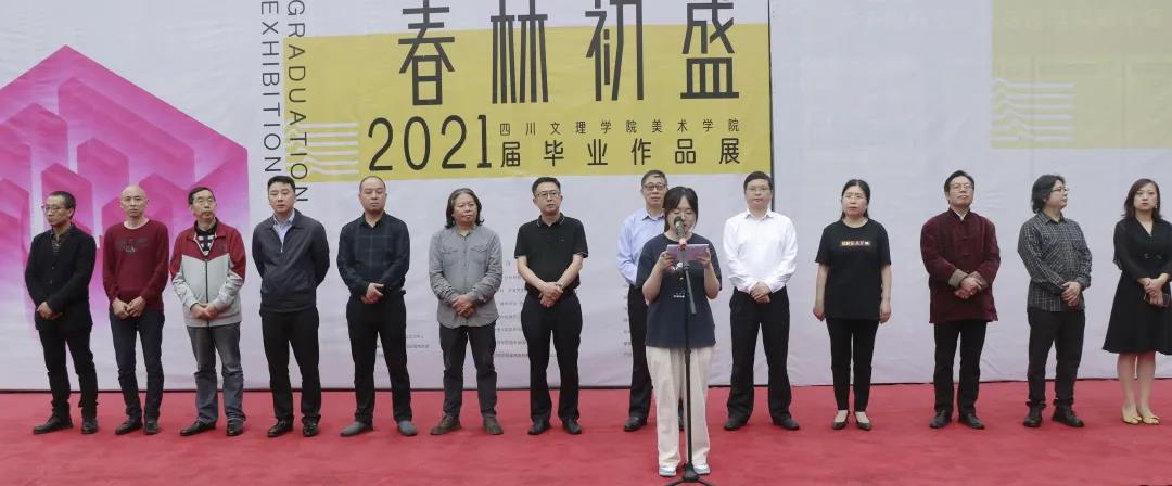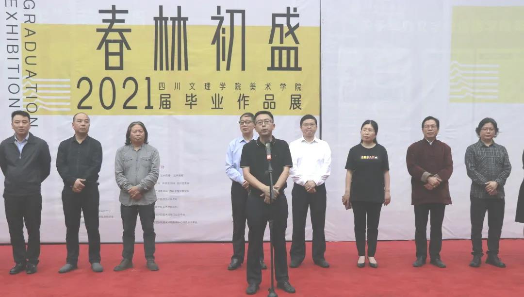 2021年5月25日下午4点,“春林初盛”——2021届毕业作品展在艺术传媒大楼广场正式开幕。出席开幕式的有bevictor伟德官网董事长刁永锋教授,四川文理公司党委副书记、书法艺术研究院经理侯忠明教授,bevictor伟德官网副董事长程碧英教授,达州市文联党组书记孙黎龙先生,达州市美术家协会主席龙飞先生,达州市文旅局副局长曾军先生,bevictor伟德官网经理刘承川教授,bevictor伟德官网正处级组织员王子荣老师等各位领导以及公司师生代表,社会各界人士莅临现场开幕式。此次开幕式由美术馆馆长邓旭老师主持。
