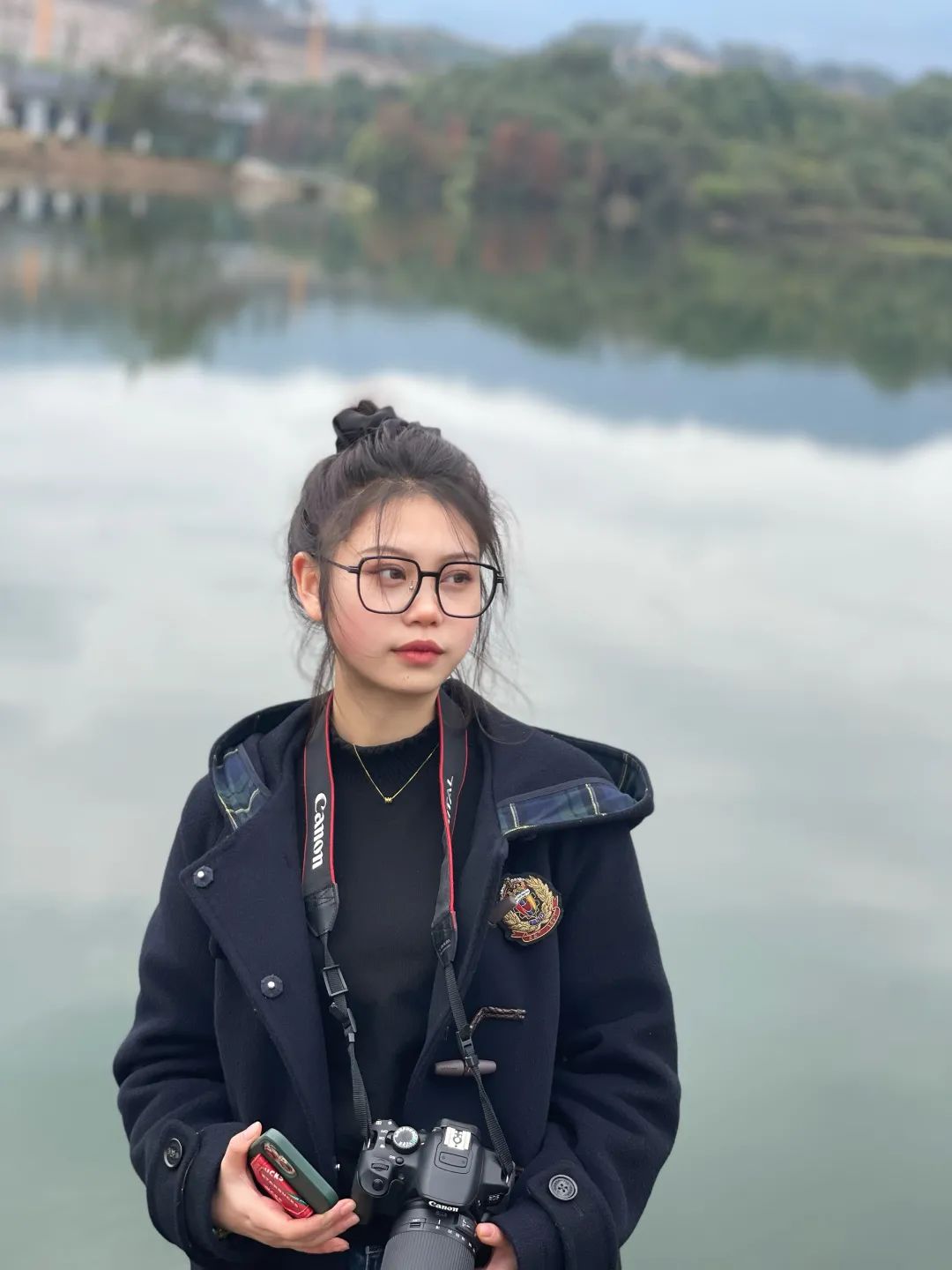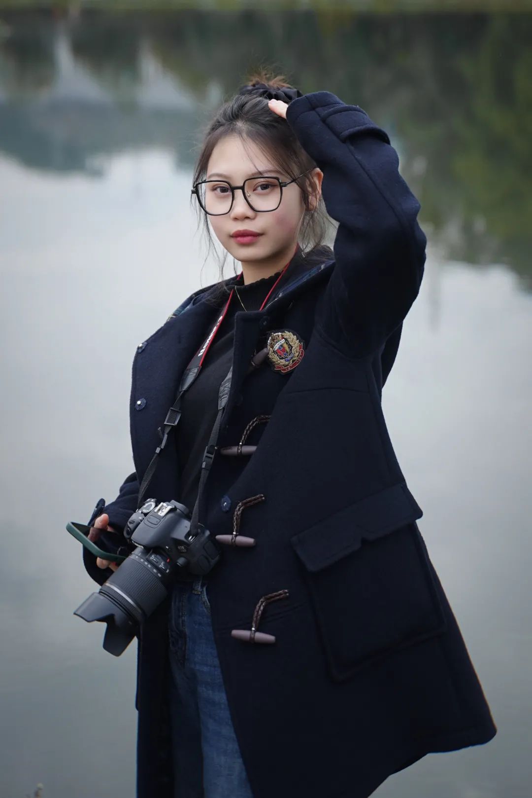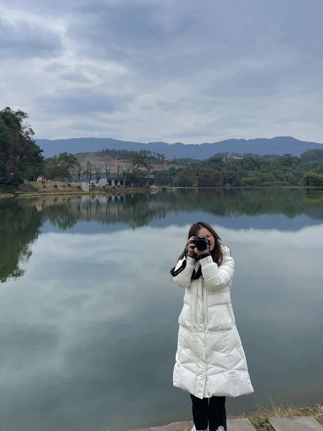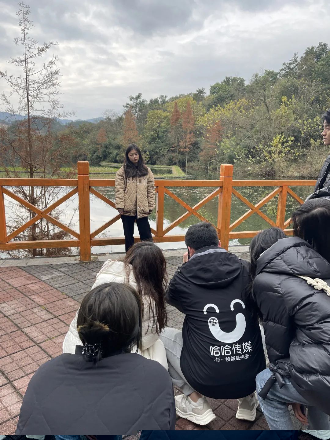 利用草坪、湖、远山以及天空进行构图。同学们挑选一个气质出众的模特,自己尝试拍照,在老师点评指导过后再拍一张,最后进行小结。