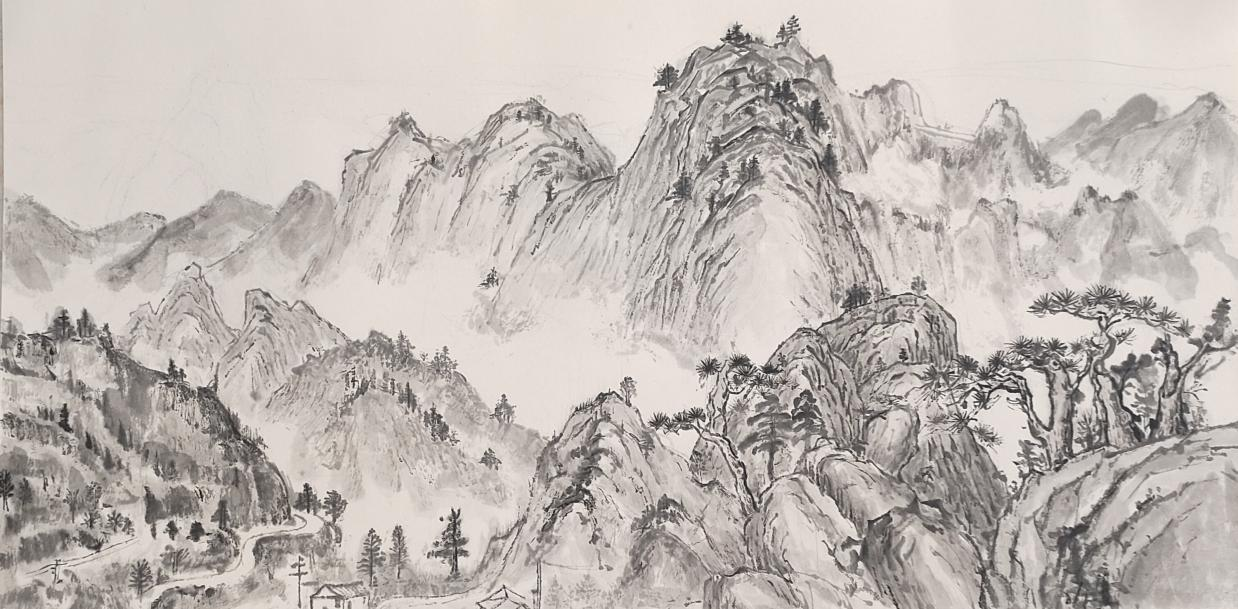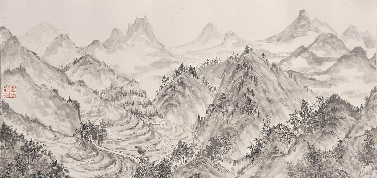 《八台云壑图》 纸本水墨 33*65cm 陈嘉瑜
