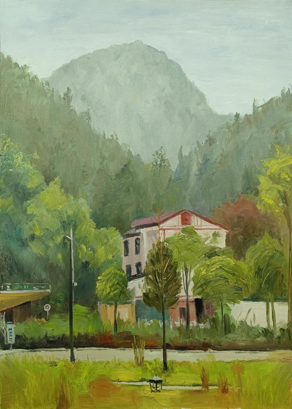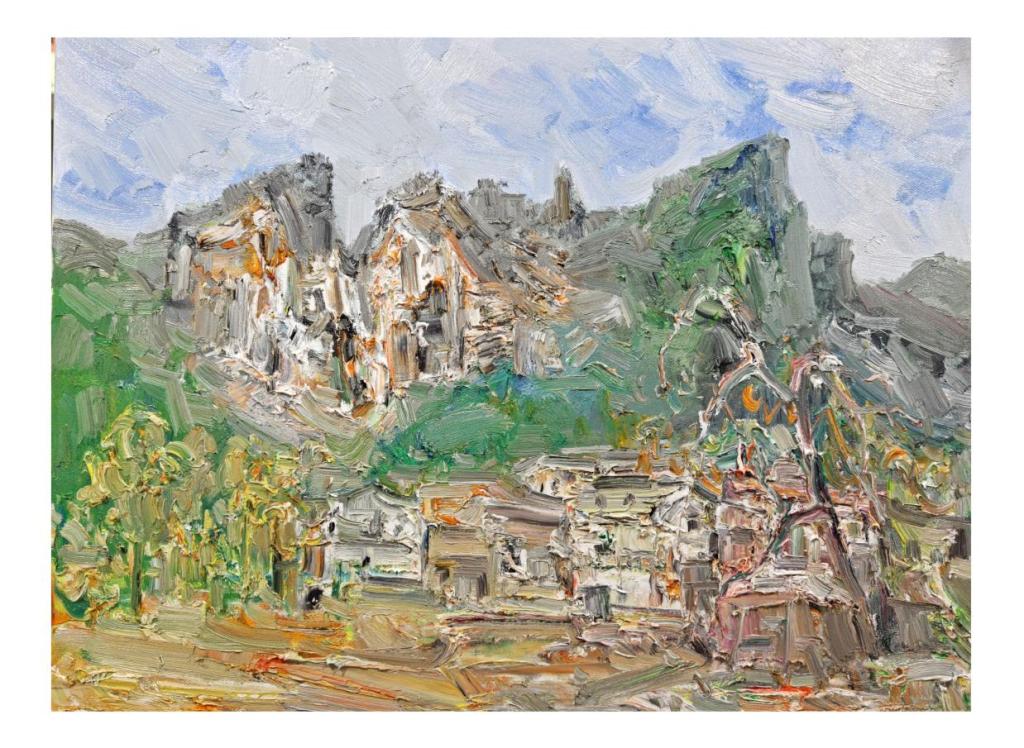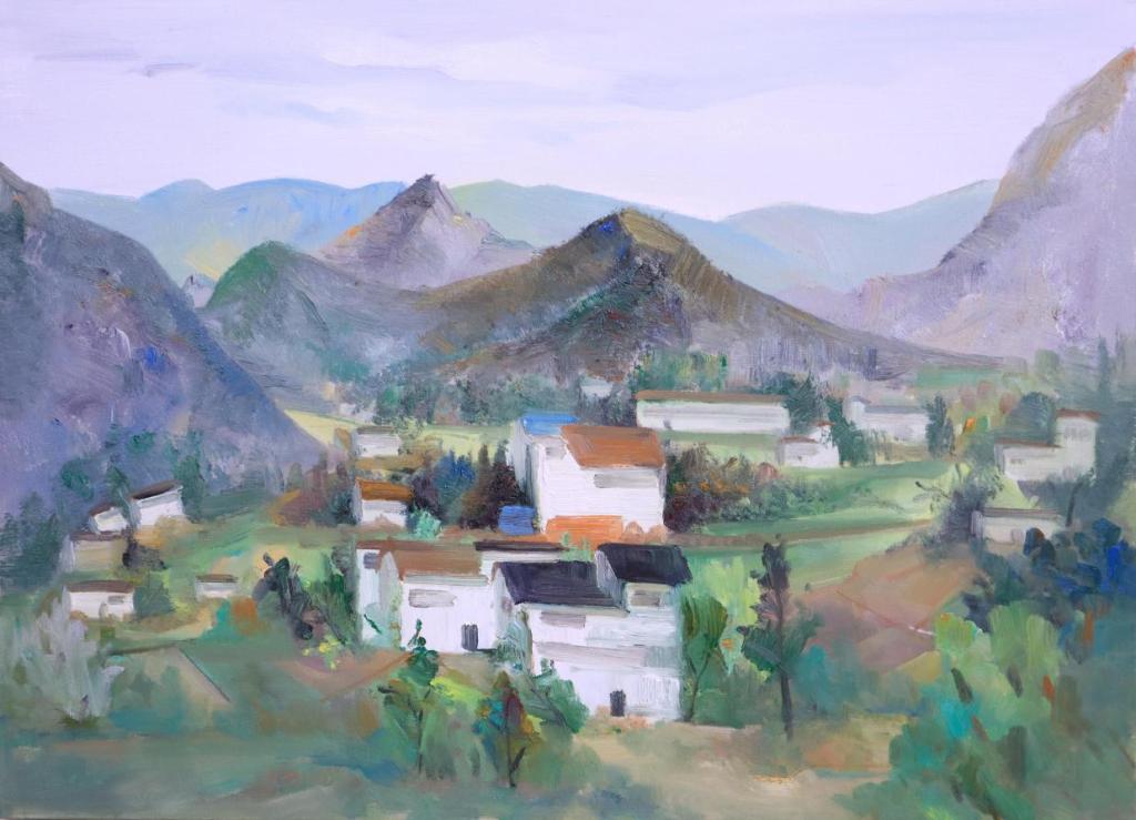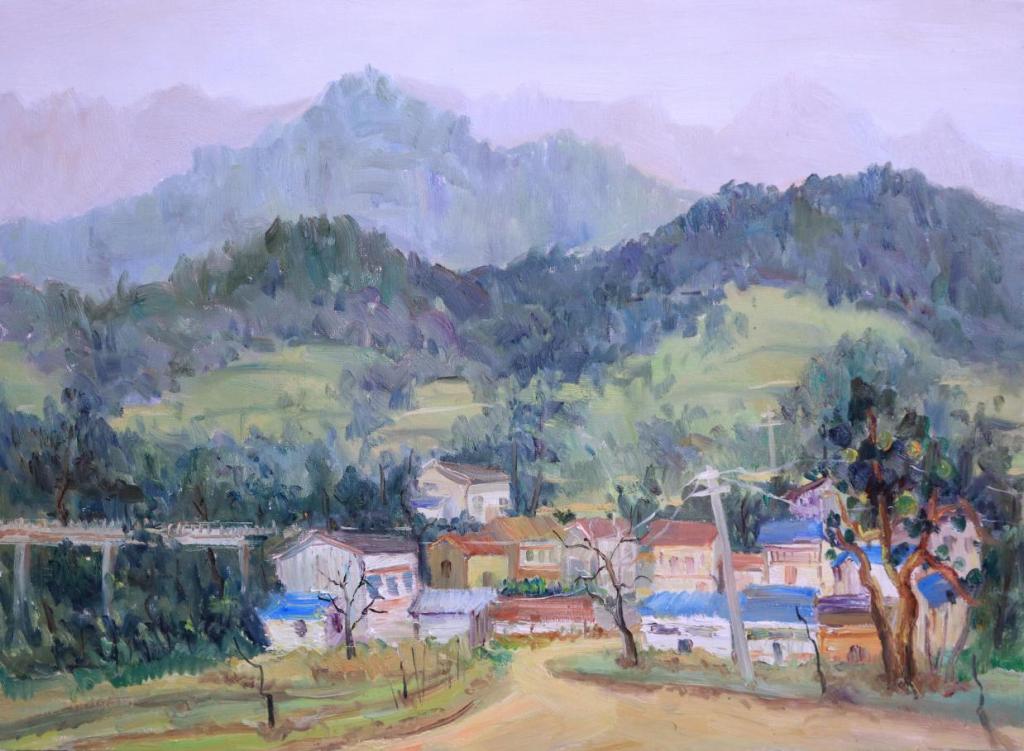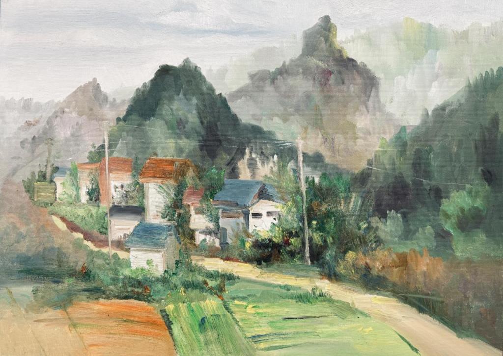 《八台麓畔,翠影人家》布面油画70*50cm 易慧琳