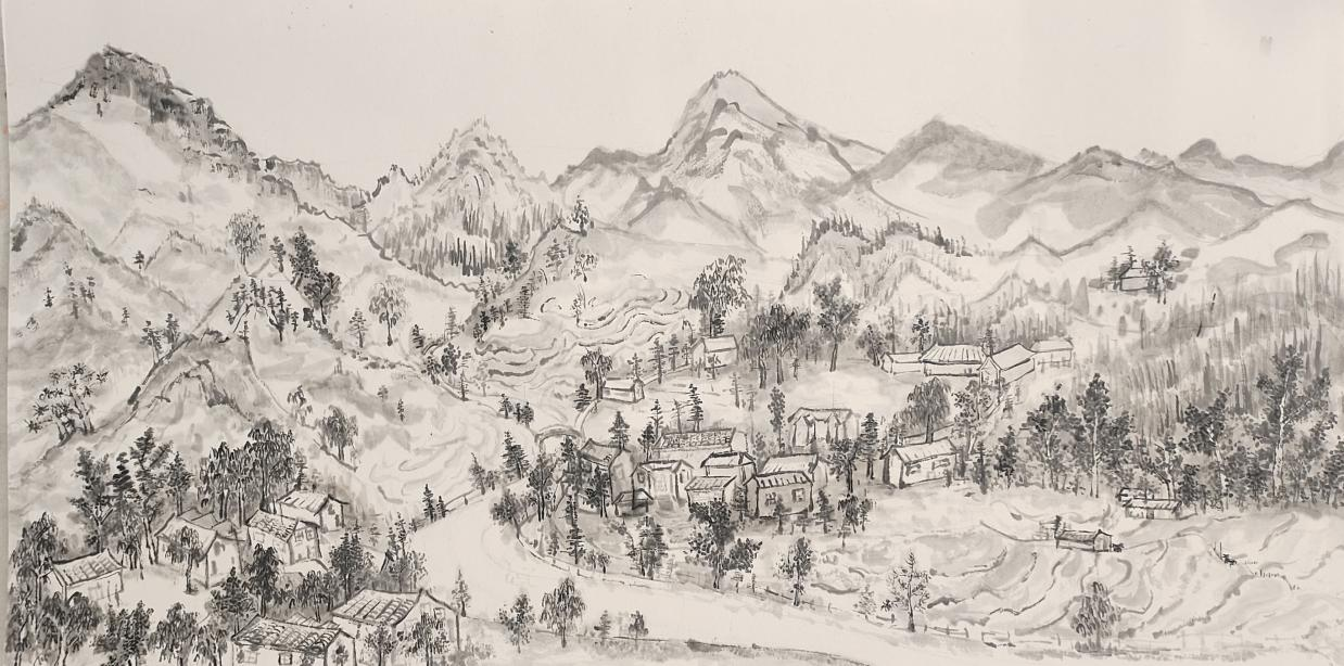《八台峰峦村居图》纸本水墨 33*65cm 刘杨