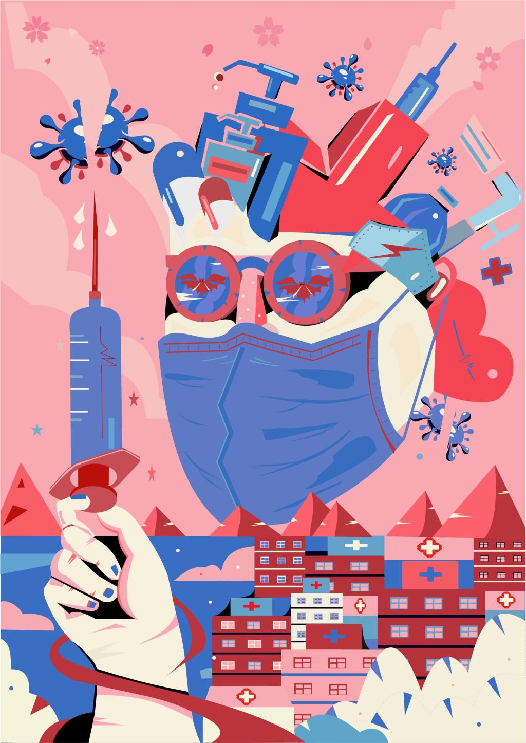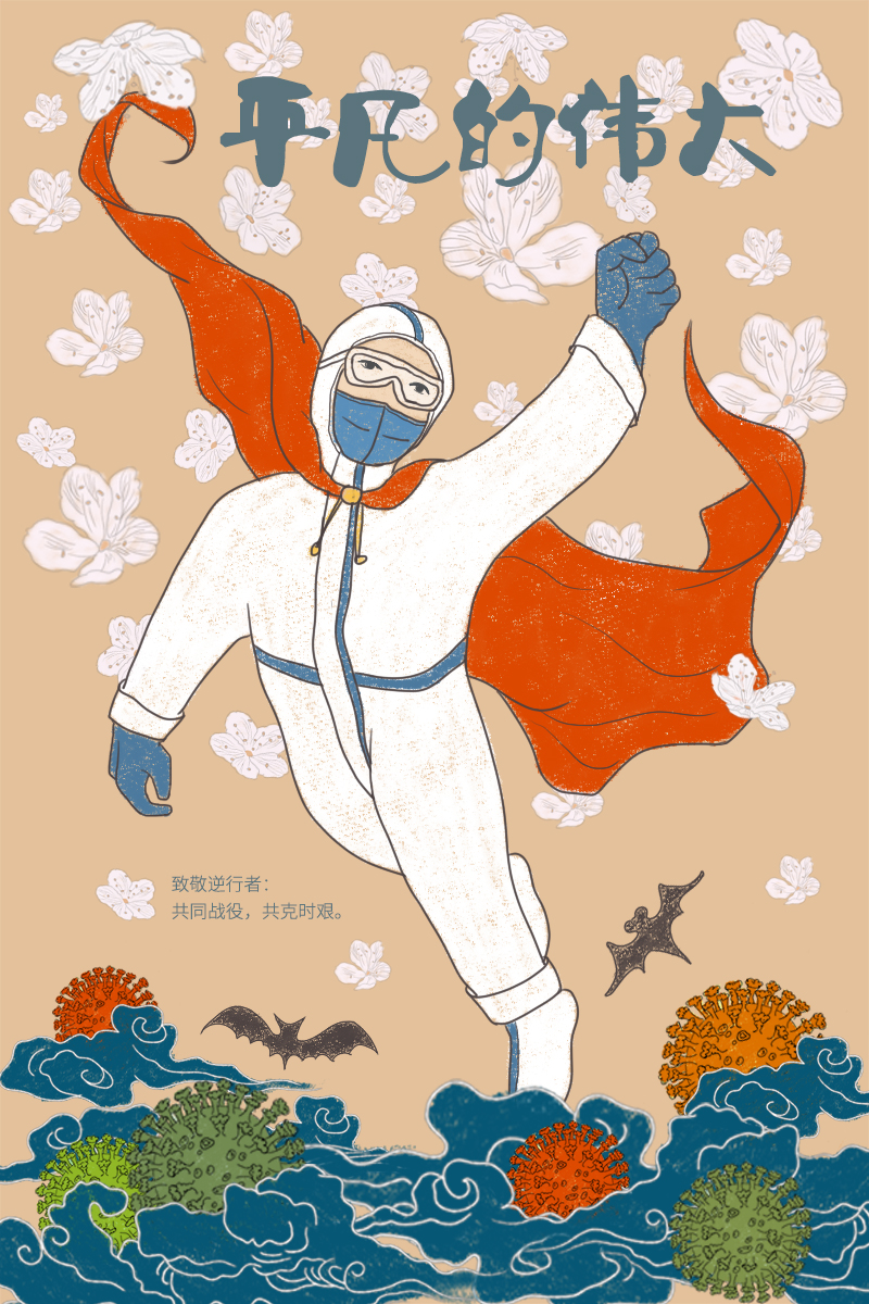 活动中,美院各个年级的同学踊跃投稿,通过各专业老师的细心审核、评选,最终挑选出28件优秀作品,作品内容丰富多彩,这些作品包括插画、书法、黑白木刻、绘画,都用艺术的语言来表达对在一线“战士”的敬意。充分展现了美院学子的爱国热情以及对于抗疫人员的崇敬。