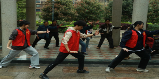 社区舞动活动—太极教学中,志愿者们为社区居民准备太极拳课程,走进社会基层开展活动。打太极时精神抖擞,动作整齐划一,收放自如,如行云流水,一招一式充分展示出太极练习者的刚柔之美,不仅让社区居民感受到太极拳的魅力,同时也促进了太极爱好者之间的交流和互动,营造了老有所学、全民健身的良好氛围。