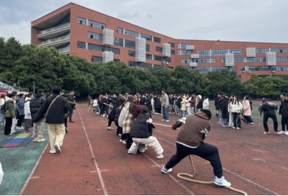 随着各项比赛的有序开展,田径运动场上气氛热烈。在彩虹跑中,同学们如彩色的浪潮般奔腾,享受着运动带来的快乐;拔河比赛现场,各班的队伍齐心协力、呐喊助威,展现出强大的团队凝聚力;50 米接力赛的选手们则如离弦之箭,快速传递着接力棒,演绎着速度与激情。单人项目中,同学们也各展所长,立定跳远的选手们奋力一跃,追求更远的距离;跳绳选手们身轻如燕,绳子在他们手中飞速旋转;投篮的同学专注瞄准,力求每一次出手都能命中。