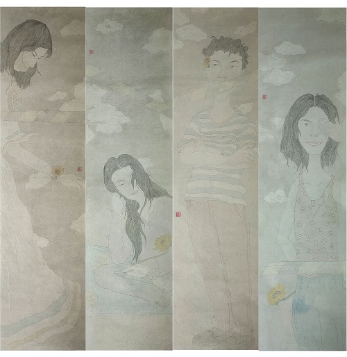 《漂亮的她们》中国画 180×120cm 钱欢 指导老师:李炎