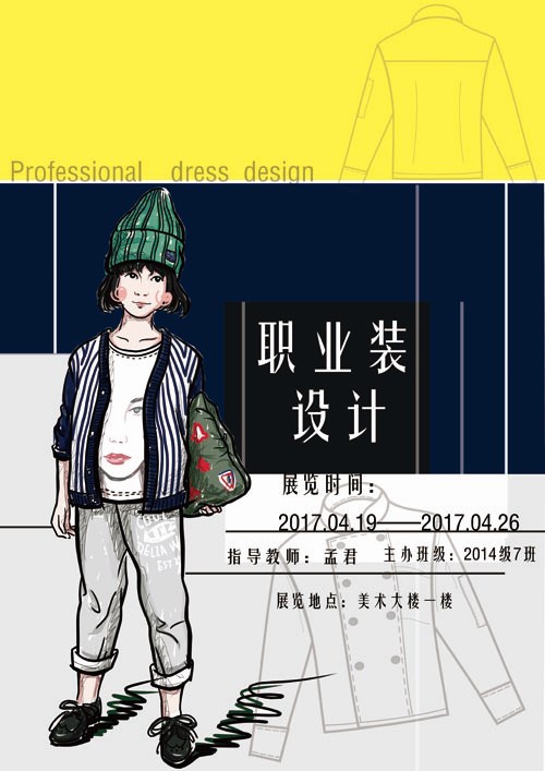 孟君老师担任2014级7班服装与服饰设计专业《职业装设计》课程教学工作,课程时长4周,总计64课时