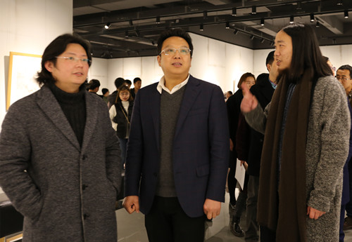 美术公司党政负责人陪同李壮成副董事长观看画展