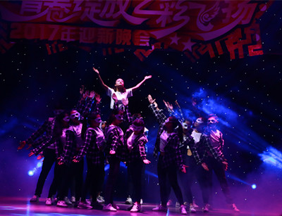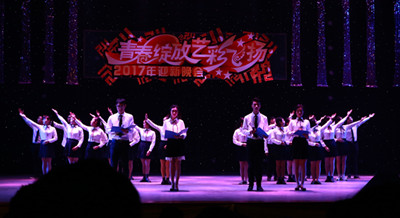 2016年12月18日晚7点,bevictor伟德官网“青春绽放·艺彩飞扬”2017年迎新晚会在音乐厅隆重举行。公司团委书记于贵、音乐与演艺公司党总支书记阮碧辉莅临晚会现场,美术公司党总支书记张吉应、党总支副书记尹羿之及全体师生观看了演出。