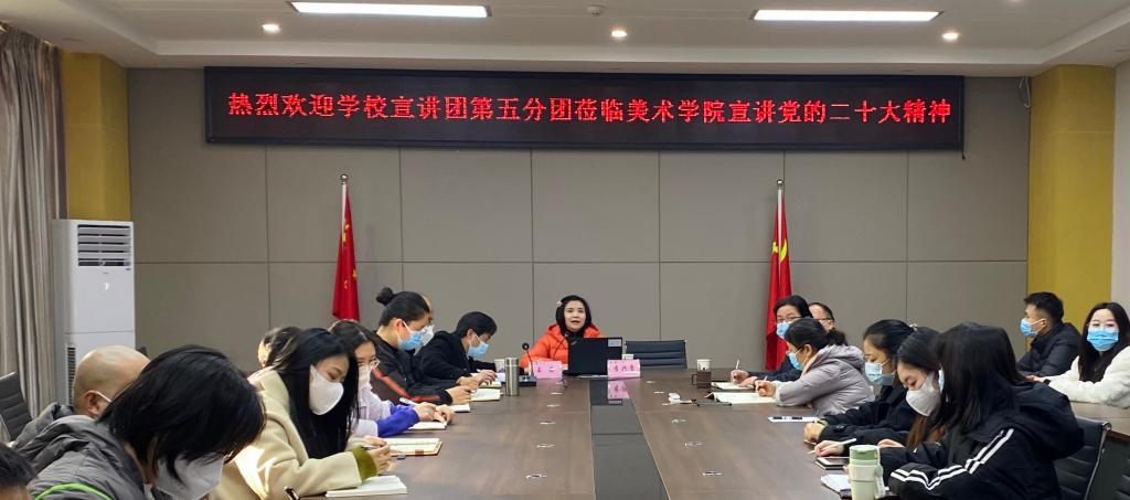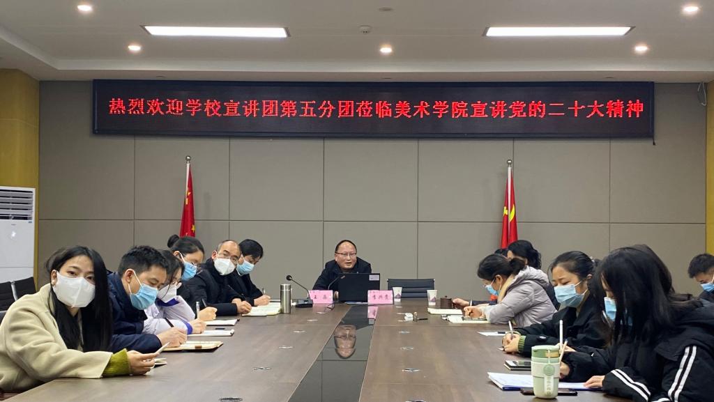 为进一步学习贯彻党的二十大精神,夯实理论学习成果,12月20日,bevictor伟德官网“二十大宣讲团”第五分团莅临bevictor伟德官网宣讲党的二十大精神。宣讲报告会由美术公司党委书记罗江主持。bevictor伟德官网经理刘承川、副书记王斌等党政领导和师生党员到场学习。