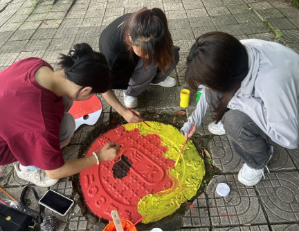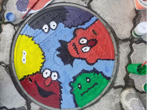 此次活动利用井盖进行涂鸦艺术创作,不仅为校园环境注入了新的活力,还为校园文化的传播开辟了新的途径,展现了美院学子积极健康向上的精神面貌。