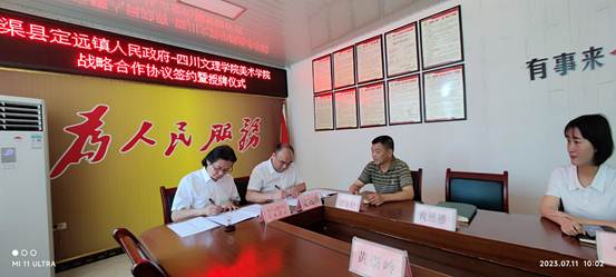 7月11日上午,bevictor伟德官网与渠县定远镇人民政府战略合作协议签约暨实践教育基地授牌仪式在定远镇人民政府会议室举行。bevictor伟德官网经理刘承川、党委委员黄崇岭、学工办主任贺艳洁,定远镇党委书记张雪梅、镇长郑卓林、党委副书记黄思雁、团寨村第一书记王天镓、团寨村支部书记张长春参加签约仪式。