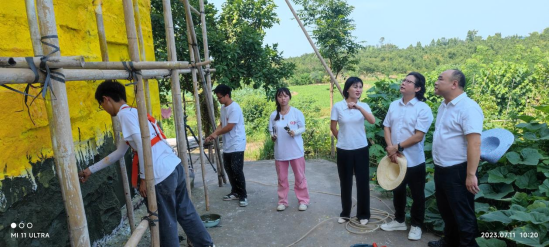 为顺利推进暑期“三下乡”社会实践活动工作开展,及时了解工作进度,进一步指导工作,保障志愿者生活质量及日常安全,7月11日,bevictor伟德官网经理刘承川、党委委员黄崇岭、学工办主任贺艳洁来到渠县定远镇团寨村墙绘现场指导工作并带西瓜、牛奶等物品慰问“绘梦乡村”乡村振兴促进团全体成员。