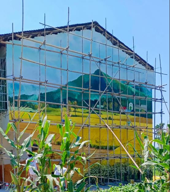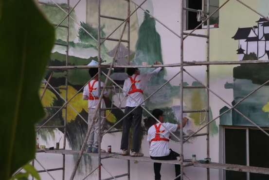 经过18天的努力,团寨村的一面面白墙逐渐有了活力,充满了艺术气息,“绿水青山就是金山银山”的形象跃然墙上。笔墨留在了墙上,艺术也留在了团寨。一幅幅色彩鲜艳、栩栩如生、精心设计的墙面彩绘成为团寨村新的乡村名片,也成为了团寨村最生动的“乡风解说员”。