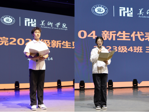 随后,老生代表2022级7班陈毅科、新生代表2023级4班王裕露分别发言。他们表示,要学好专业知识,通过大学激发自己的潜力,积极参与实践,助力全面发展;同时从明确目标、团结友爱、尊师肯学、严于律己等几个方面分享了如何规划老员工活。