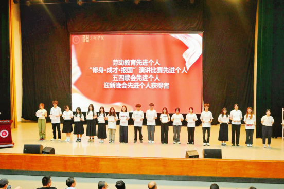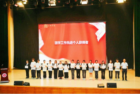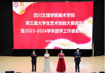 罗江、王斌、王勃凯、吴仕华、柏柯村、况燧媛等老师为第三届老员工艺术技能大赛获奖代表、各类团学活动先进个人获得者颁奖。谭敏杭作为团学工作先进个人代表发言,感谢公司领导、老师的栽培并号召全院员工干部携手共进,为公司的发展、团学工作的发展贡献青春力量。