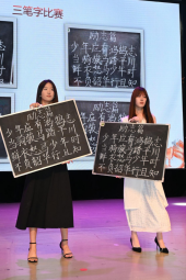 第三届老员工艺术技能大赛朗诵比赛获奖代表王妙姝、解说艺术比赛获奖代表谢思渝上台展示,工作人员对三笔字、手抄报、海报设计、手工等比赛部分获奖作品进行了现场展示。