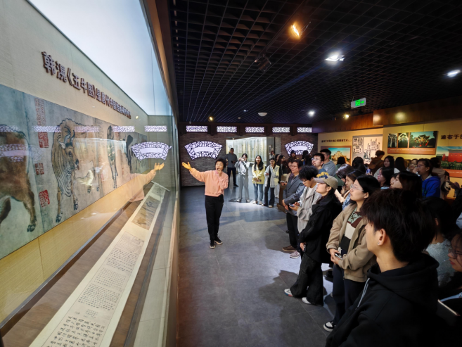 在达州市文学艺术院参观了巴山书画院、达州美术馆、艺术陈列馆馆藏作品,在解说员的带领下同学们在品味艺术作品的魅力中启发出艺术创作的灵感。本次考察的第三站是达州博物馆,通过博物馆的展品考察地方文化发展历程。