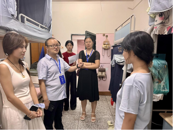 9月11日下午,美术公司党委书记张吉应、经理王赠怡、正处级组织员胡若东、党委副书记王斌带领全体专职辅导员和班级助理,共同深入2025级新生宿舍,开展走访慰问活动,为同学们送去公司的温暖关怀和殷切期望。