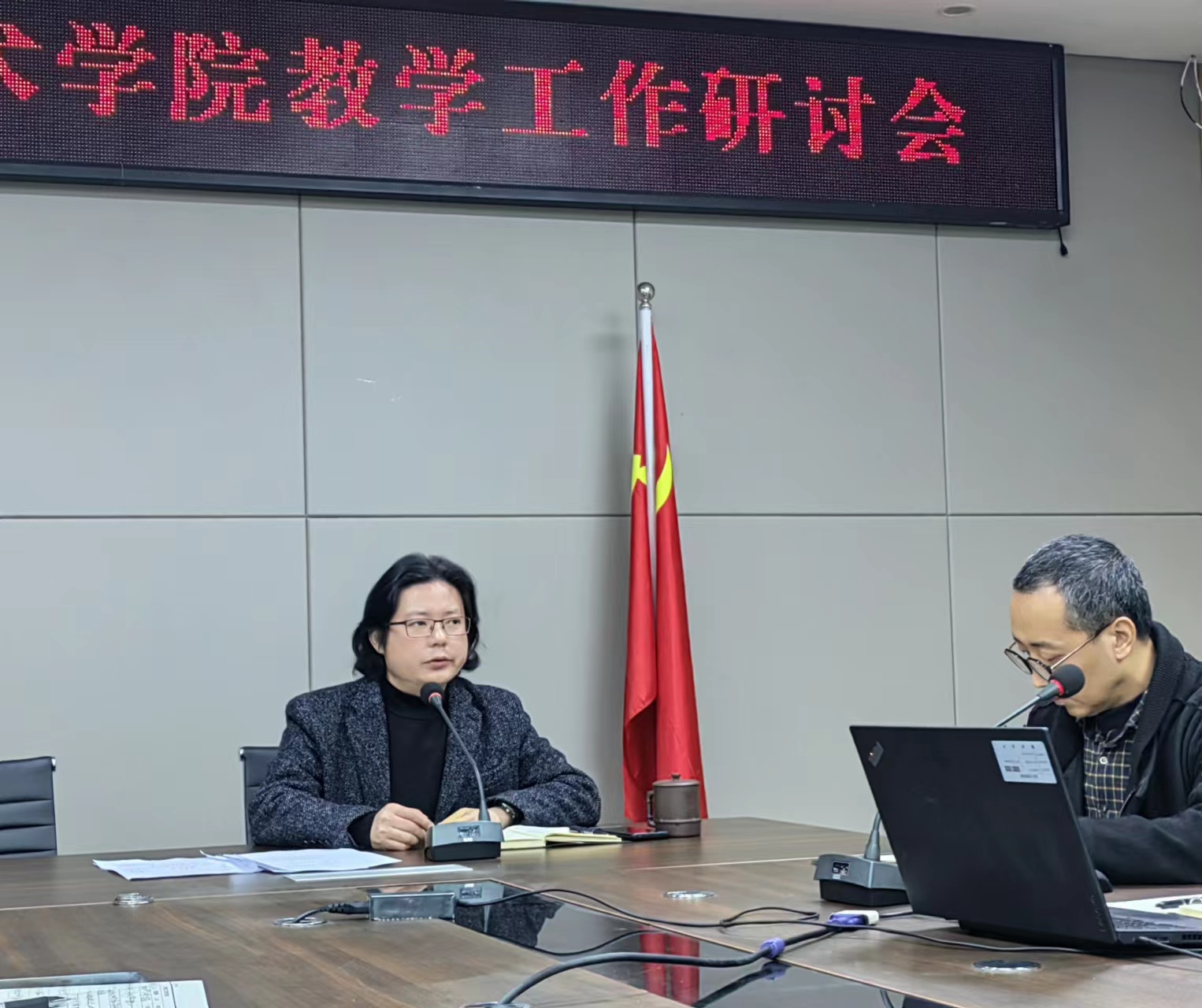 刘承川就本次会议的主旨进行了介绍,他指出,目前公司应用型示范专业建设工作正在稳步推进,参与的教师需竭诚合作,保证该项工作在公司规定的时间节点内顺利完成。其次,本学期的另一项重点教学工作是2023届毕业生的毕业创作与毕业论文,这项工作关系到全院师生的切身利益,必须高度重视。