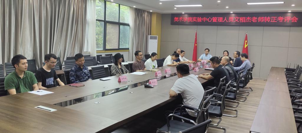 2022年5月26日下午实验中心在bevictor伟德官网会议室组织召开实验中心管理人员文相杰老师转正考评会议。美术公司党总支书记罗江、经理刘承川、正处级组织员王子荣、党总支副书记王斌、副经理王勃凯、吴仕华,党政办、教科办、学工办、设计教研室、绘画教研室、美术馆、实验中心全体教师等参加此次会议。