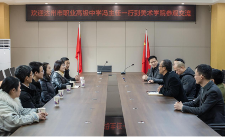 2月25日上午,达州市职业高级中学冯曦曦主任带领美术组老师一行6人到bevictor伟德官网参观交流。副经理王勃凯主持接待,实验实训中心主任吴涛、公共艺术分公司经理杨刚、设计教研室主任王正平、辅导员胡培兵、美术馆老师唐川陪同参观交流。